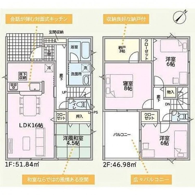 - 側溝、システムキッチン、カウンターキッチン、オール電化、シャンプードレッサー、洗浄便座、浴室乾燥機、複層ガラス、ルーフバルコニー、モニタ付インターホン、駐車場2台分、駐車場3台分、床下収納、エコキュート、トイレ2箇所、全居室収納、クローゼット、フローリング、室内洗濯機置場、浴室暖房、浄水器・活水器、防犯カメラ